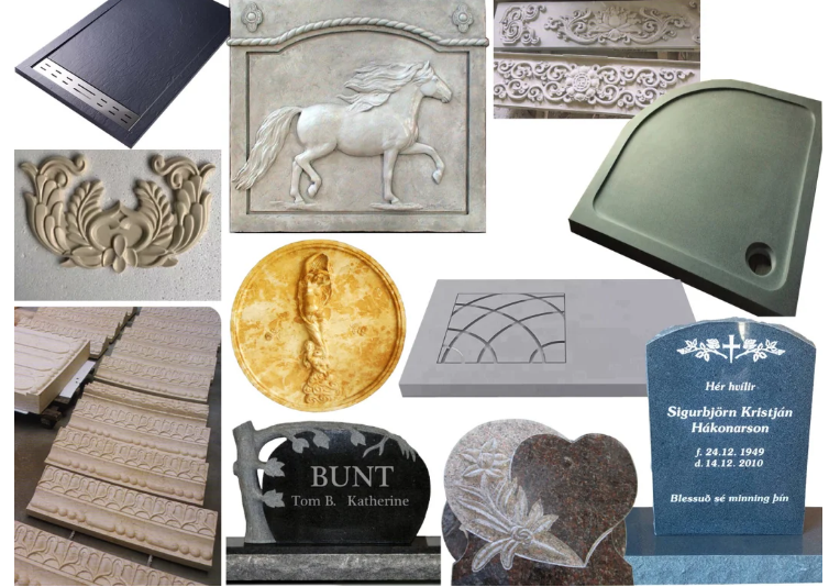利用:*浅浮雕,*线条雕镂切割,边缘翻转 *墓志铭/墓碑、里程碑 *记念牌 *家具、壁炉。 *台面、水槽、凹槽、淋浴托盘